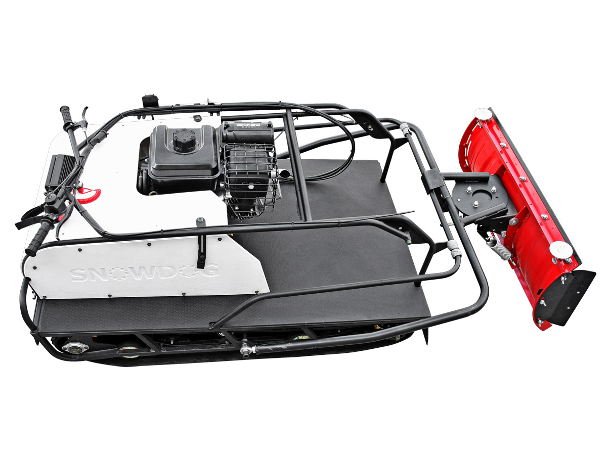 Данные снегоотвалы устанавливаются на мотобуксировщиках Snowdog Twin Track. Наличие реверс-редуктора с пониженной передачей позволяет комфортно перемещаться со скоростью шага (4–6 км/ч).